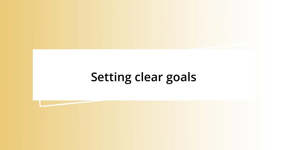 Setting clear goals is the cornerstone of any successful event timeline. When I plan an event, I start by defining what I want to achieve. It’s like painting a picture; without a clear vision, I end up with a jumble of colors and no focus. Recently, while organizing a community festival, I outlined specific goals such as attendance, engagement activities, and fundraising targets. This crystallized my priorities, ensuring every decision I made supported those aims.