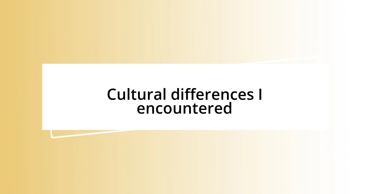Cultural differences I encountered