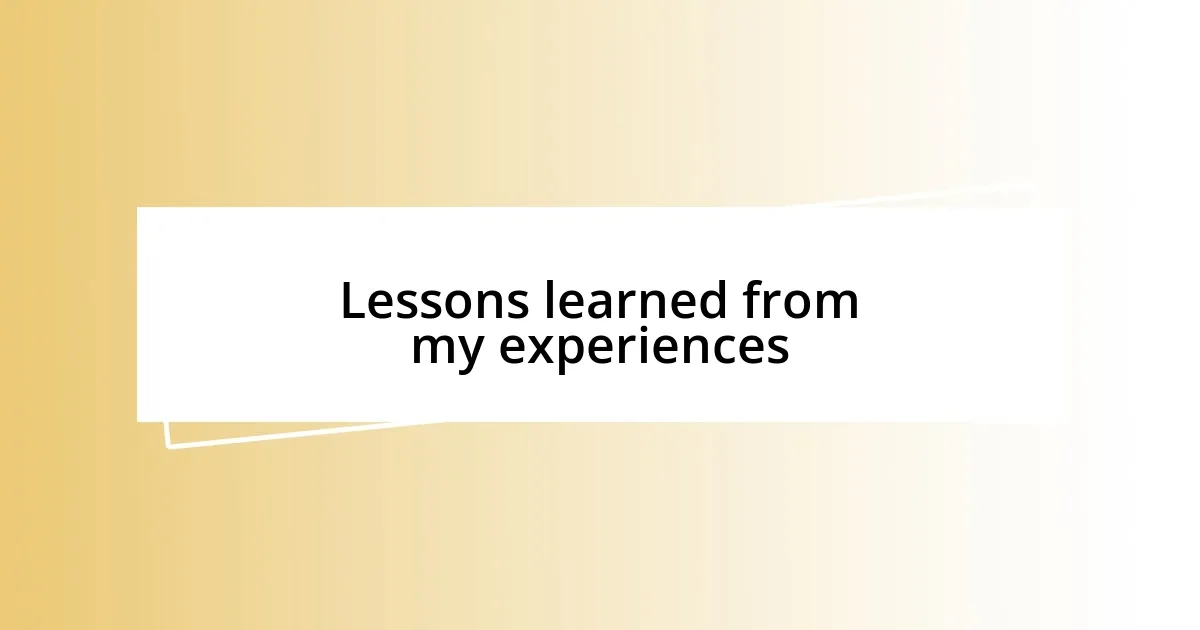 Lessons learned from my experiences